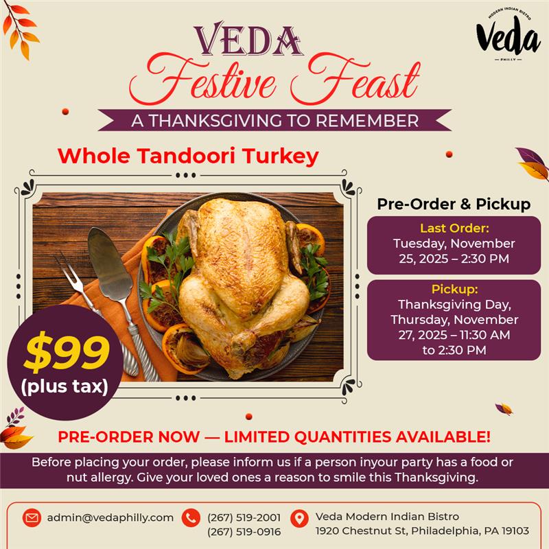 A confluence of two beautiful cultures coming together, Veda is a little bite of India located in the heart of Center City.